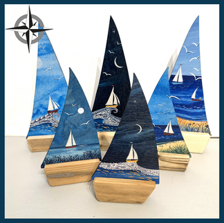 We've had a new delivery of Emily Longhurst's wooden boats. Each one is unique and the hardboard sails are hand painted in acrylic and Indian ink. The hulls are made from reclaimed wood, most of which has been collected along the Norfolk coastline. They make the perfect gift - come in and take a look when you're next in town.